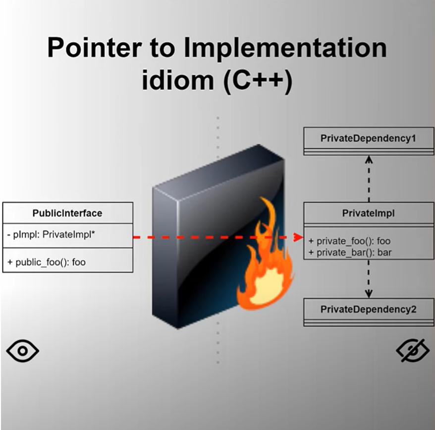 2. **减少编译依赖**：因为实现细节完全隐藏在实现文件中，<mark style="color:red;">接口头文件的更改不会导致依赖它的代码重新编译，从而减少了编译时间。</mark>