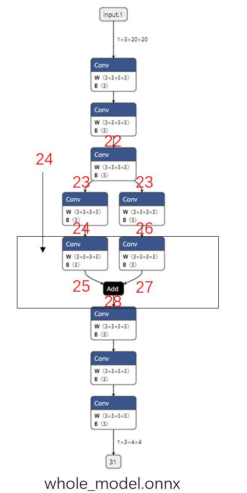 在这个子模型中,我们在保持原有的输入 input.1,输出 31 的同时,把其他几个边加入了输出中。如下图所示: